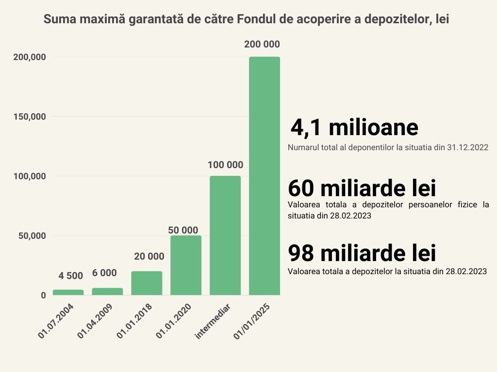 Suma garantată a depozitelor se va majora de la 50.000 la 200.000 lei