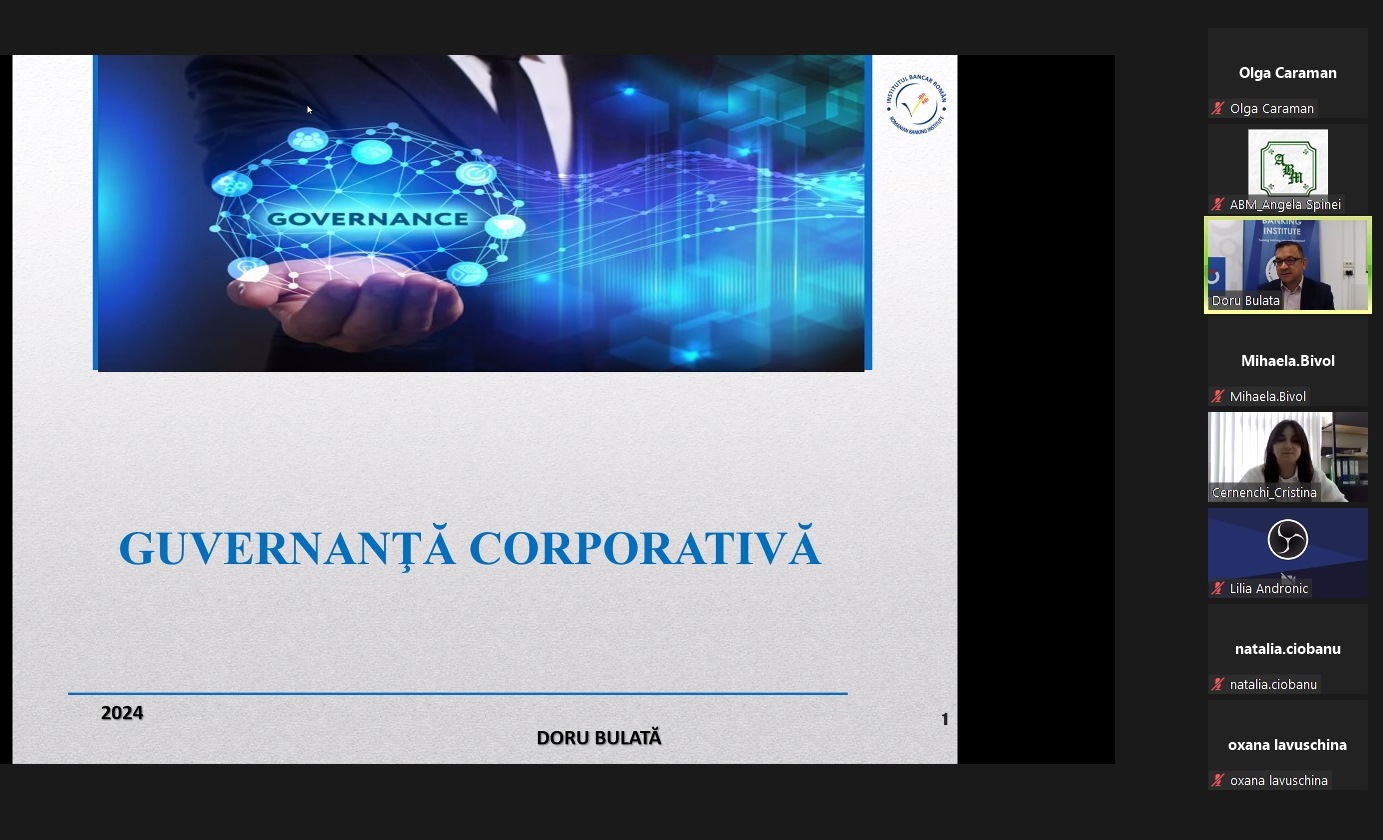 Asociația Băncilor din Moldova, în parteneriat cu Institutul Bancar Român, a organizat, în perioada 22-23 mai 2024, seminarul online "Guvernanță Corporativă".