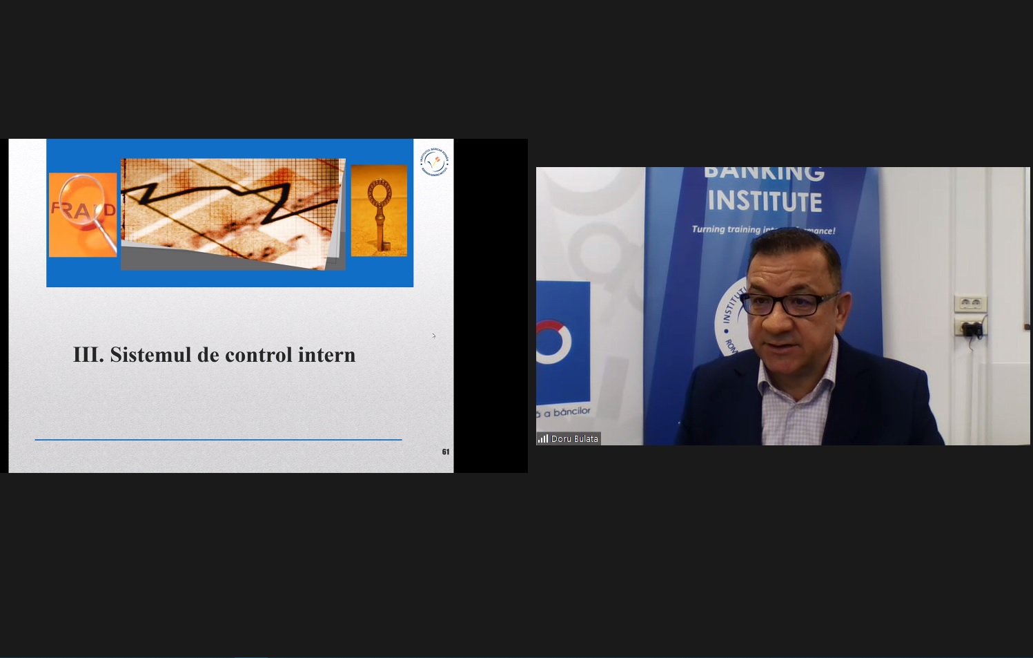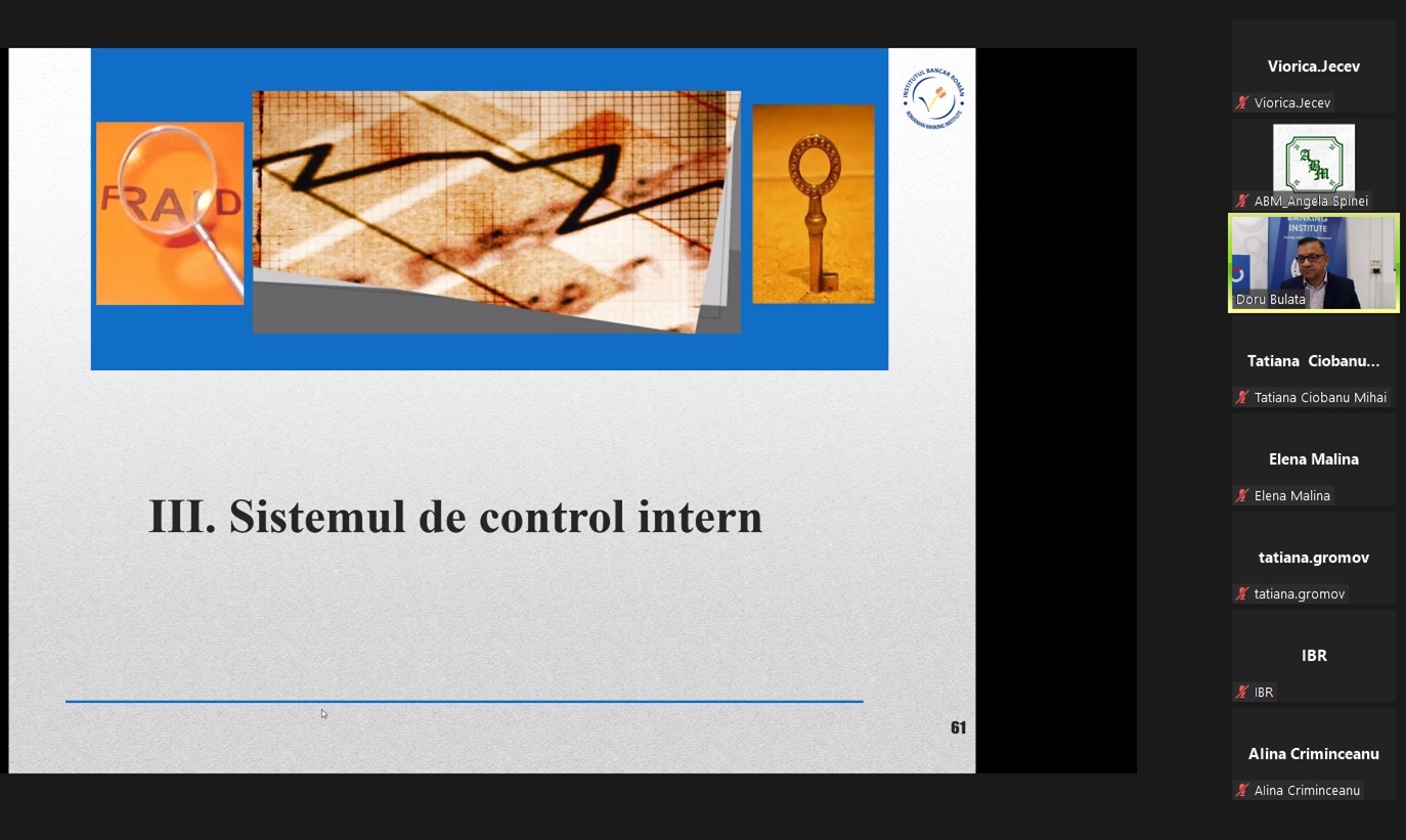 Cursul a fost susținut de către Dl Doru Bebe Bulată, un expert cu o vastă experiență și o expertiză recunoscută în domeniul guvernanței corporative, riscului și conformității, dobândite de-a lungul carierei sale în cadrul unor instituții financiare de top din Romania și al unor organizații internaționale.